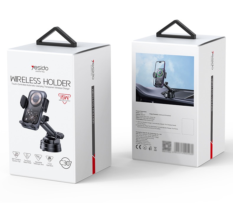 هولدر و شارژر وایرلس 15 وات یسیدو C307، ترکیبی از کارایی و راحتی! با این محصول، همگام با تکنولوژی باشید و گوشیتان را بیدردسر و سریع شارژ کنید. طراحی مدرن و ایمن آن تضمین میکند که دستگاه شما در حین رانندگی ثابت بماند. هماکنون خرید کنید و تجربهای بینقص از شارژ بیسیم را داشته باشید!